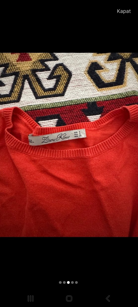 ikisini beraber satiyorum zara marka kirmizi triko ve kadife kumasli haki yesil 2 adet kazak.