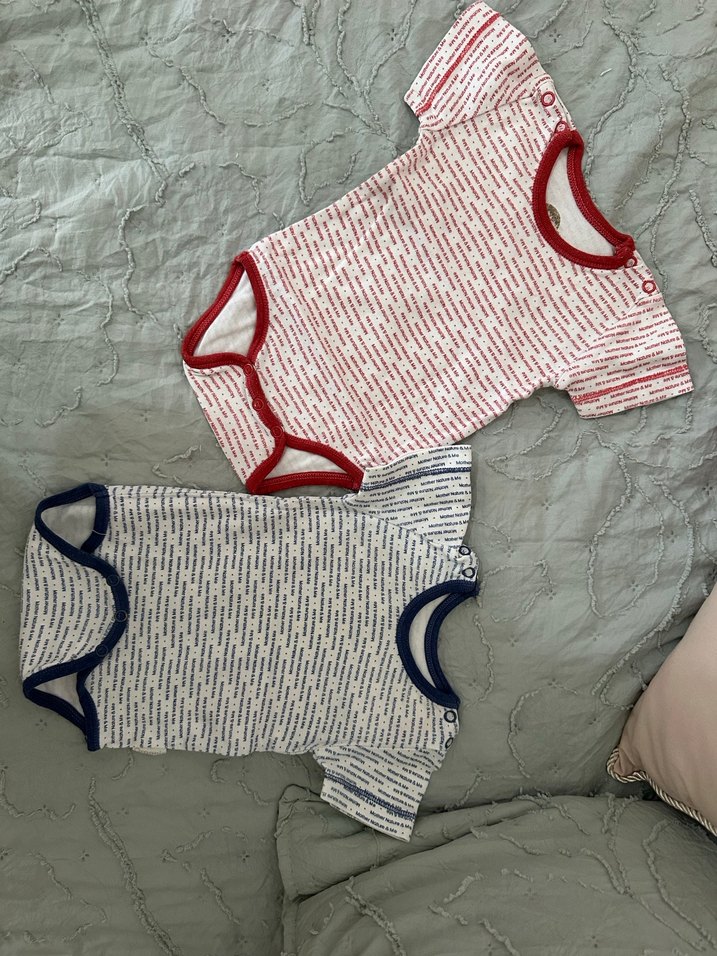 Kısa kollu, yumuşak örme dokulu erkek bebek zıbını.