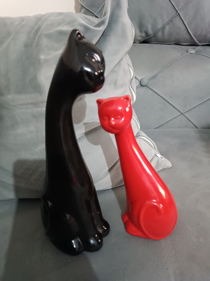 Kırmızı ve Siyah Uzun Boylu Kedi Figürleri - Görsel 1