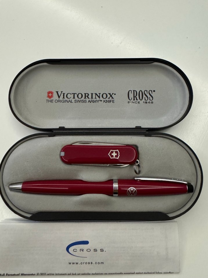 Koyu kırmızı renkte bir kalem ve Victorinox İsviçre çakısından oluşan set, şık bir kutuda sunulmuştur. Kalem üzerinde Cross logosu bulunmaktadır. ✒️ Victorınox Cross tükenmez kalem çakı seti orijinaldir çizik vs deformasyonu yoktur sıfır üründür..