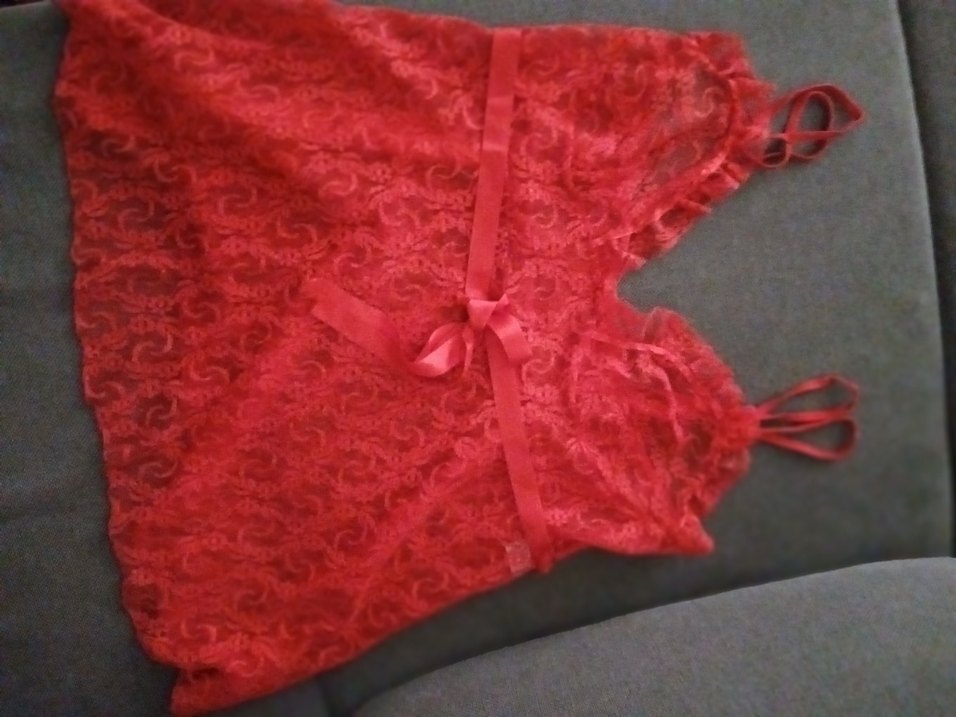Kırmızı, ince askılı, midi boyda, vintage esintili bohem tarzda, desenli ve fiyonk detaylı, vücuda oturan kadın gecelik.