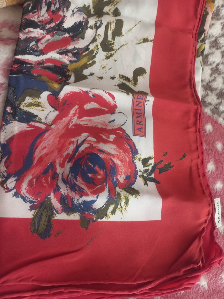 Koyu kırmızı renkte, vintage çiçek desenli, yumuşak ipek eşarp