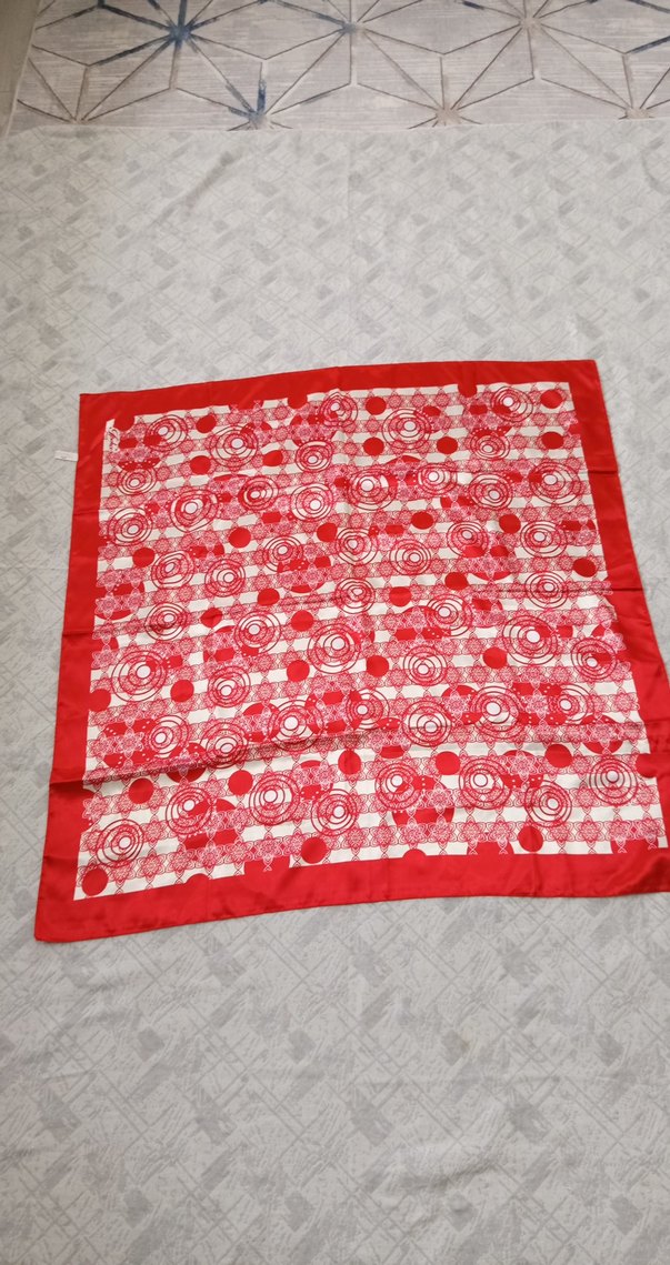 Parlak sentetik kumaştan yapılmış, fırfırlı detaylı kırmızı vintage kadın fularıdır. Bohem ve retro tarzları birleştirir.