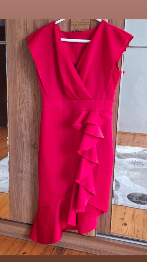 kırmızı volanlı abiye elbise sadece 1 kez kızımın 6 ay kınasında giydim xl beden