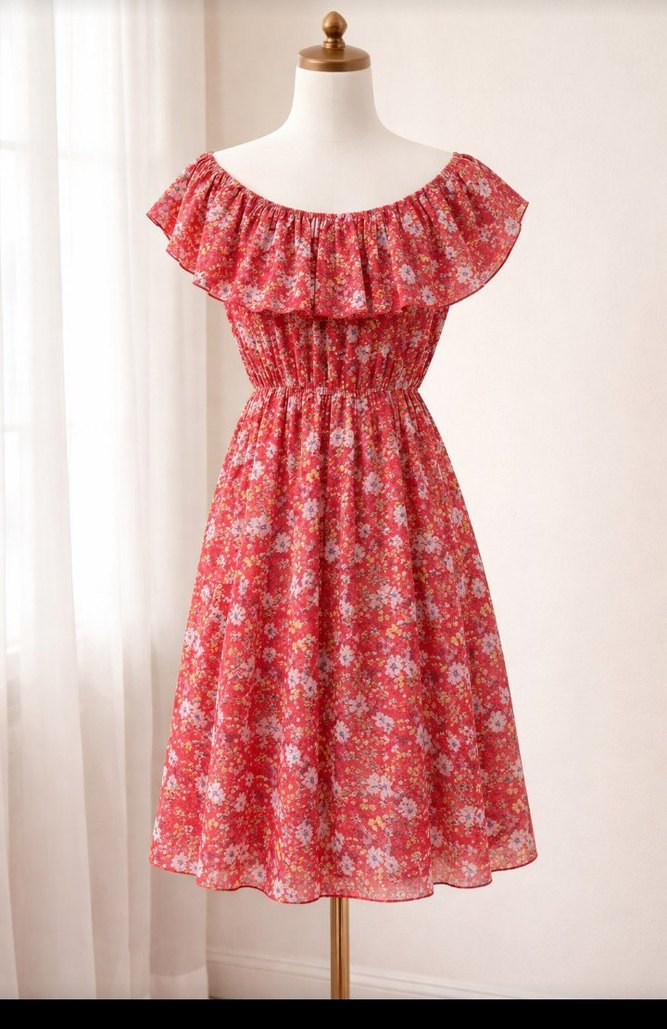 Renkli bohem elbise, straplez yaka ve volan detayına sahiptir. Midi boy ve kolsuz, rahat kesimiyle günlük kullanıma uygundur.