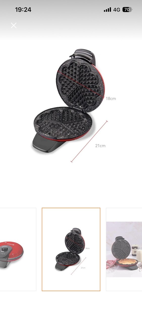 Kırmızı Waffle ve Tost Makinesi 21x18 cm