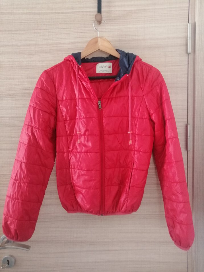Kırmızı yağmurluk-rüzgarlık. M-L bedene uygundur. Çok iyi durumdadır