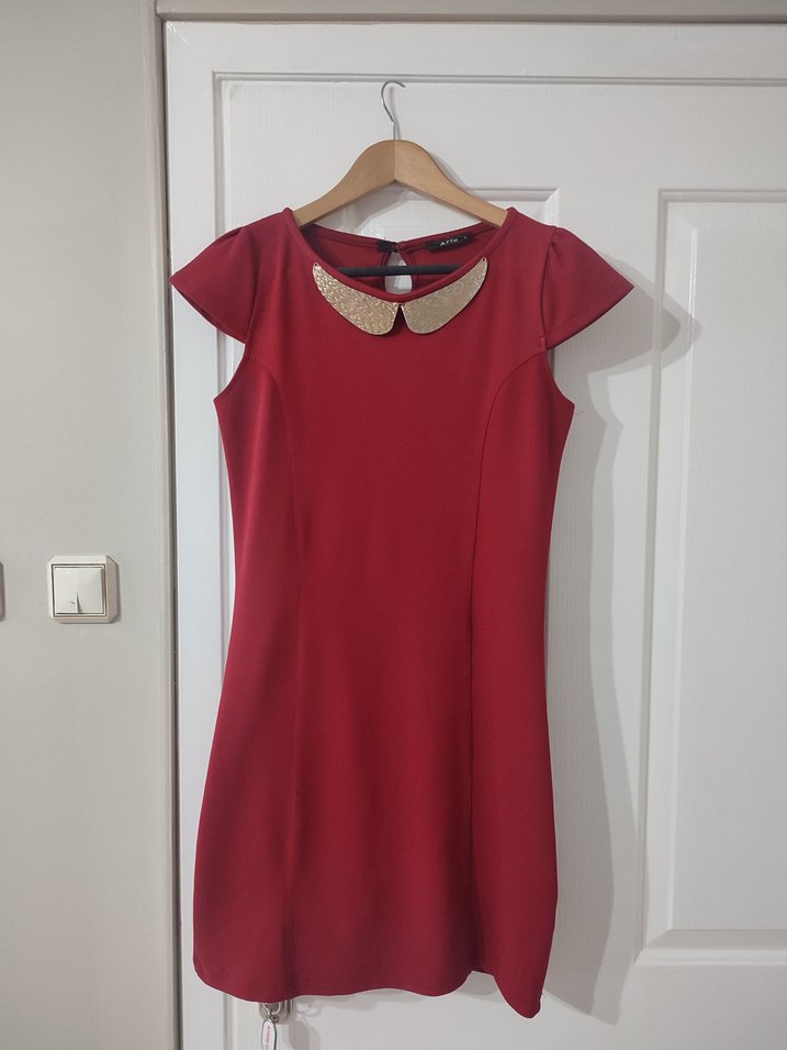 Kırmızı Yaka Detaylı Sade Likralı Elbise
