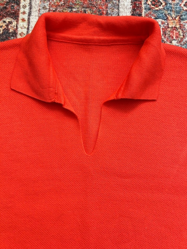 Kırmızı renkli, yakalı ve uzun kollu kadın triko kazak. Örgü dokulu, salaş kesim ve desensiz, günlük rahat kullanıma uygundur.