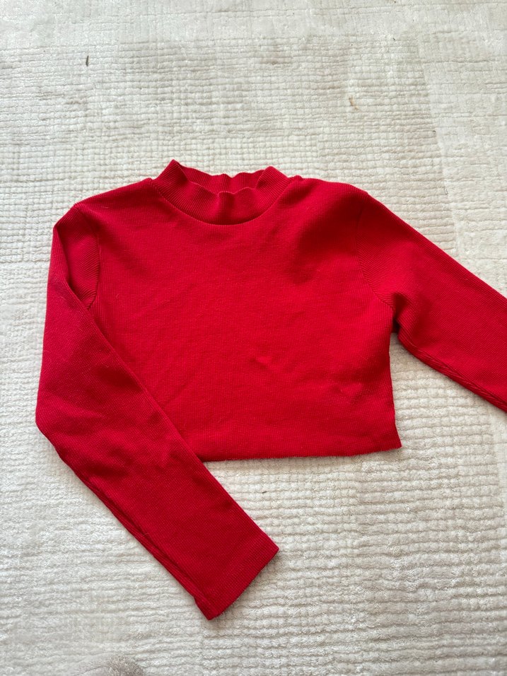 Kırmızı, uzun kollu, yarım balıkçı yaka, triko ve yumuşak kumaştan yapılmış kadın kazak. Sade ve renkli, günlük sokak stiline uygun. Defosuz