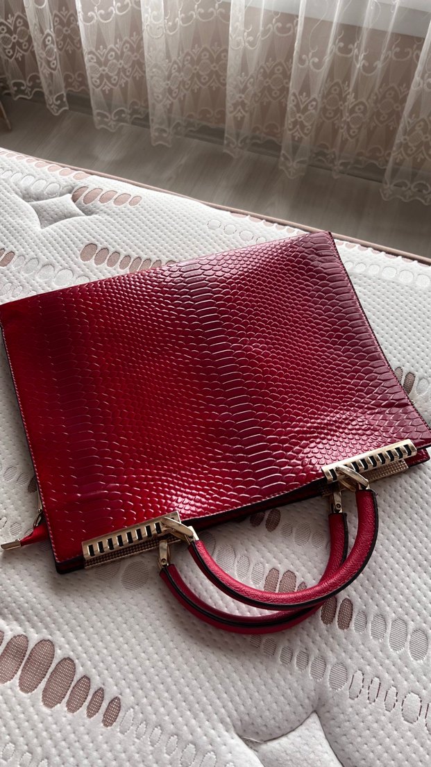 Kırmızı Yılan Derisi Desenli Deri Kadın Çanta