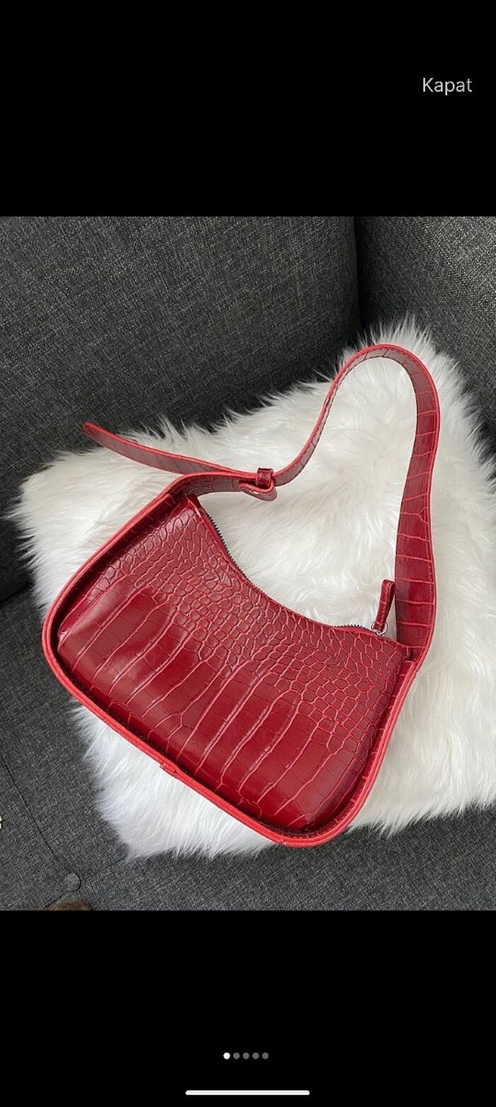 Kırmızı yılan derisi desenli, kürk detaylı deri çanta, cesur Paris sokak stilini günlük kullanım rahatlığıyla buluşturuyor.