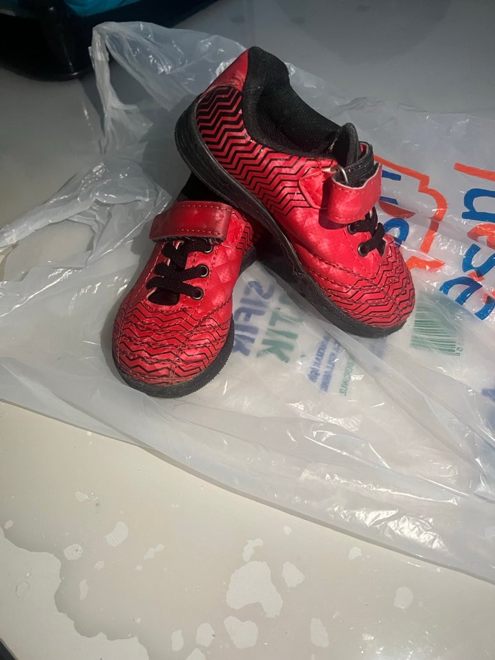 Kırmızı yılan deseni ve renkli tasarımıyla erkek çocuk spor ayakkabısı. Kauçuk tabanlı ve kolay giyilen cırt cırtlı bantlıdır.
