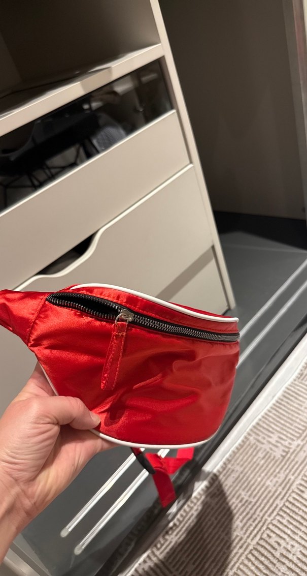 Kırmızı yılan desenli kadın çapraz çanta, fermuarlı ve sentetik kumaştan. Spor ve sokak stili için uygun, şık ve kullanışlıdır.