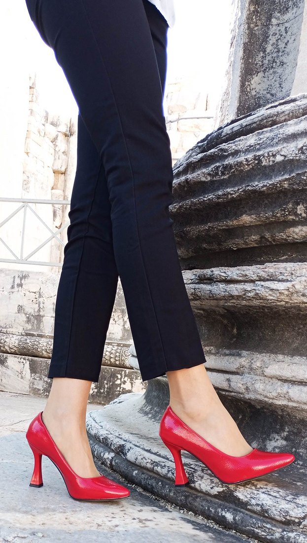 GDT Ayakkabı Kırmızı Rugan Kadeh Topuklu Kadın Stiletto Kırmızı Renk İnce Kadeh Topuk Taban:İspanyol Jurdan Taban Topuk Yüksekliği:9 Cm Malzeme:Rugan Kırışık Deri Kalıp:Standart Tam kalıp