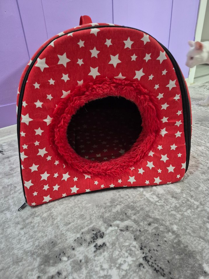 Küçük evcil hayvanlar için yumuşak, rahat girişe sahip kırmızı ve beyaz yıldız desenli kedi evi