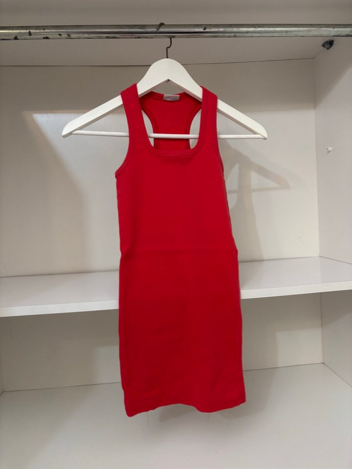 Kırmızı renkli, yüksek yakalı ve midi boyda, kadınlar için kolsuz, vücuda oturan bir atlet elbise. Düz ve sokak stiline uygun, günlük kullanıma elverişli, sentetik kumaştan üretilmiştir.