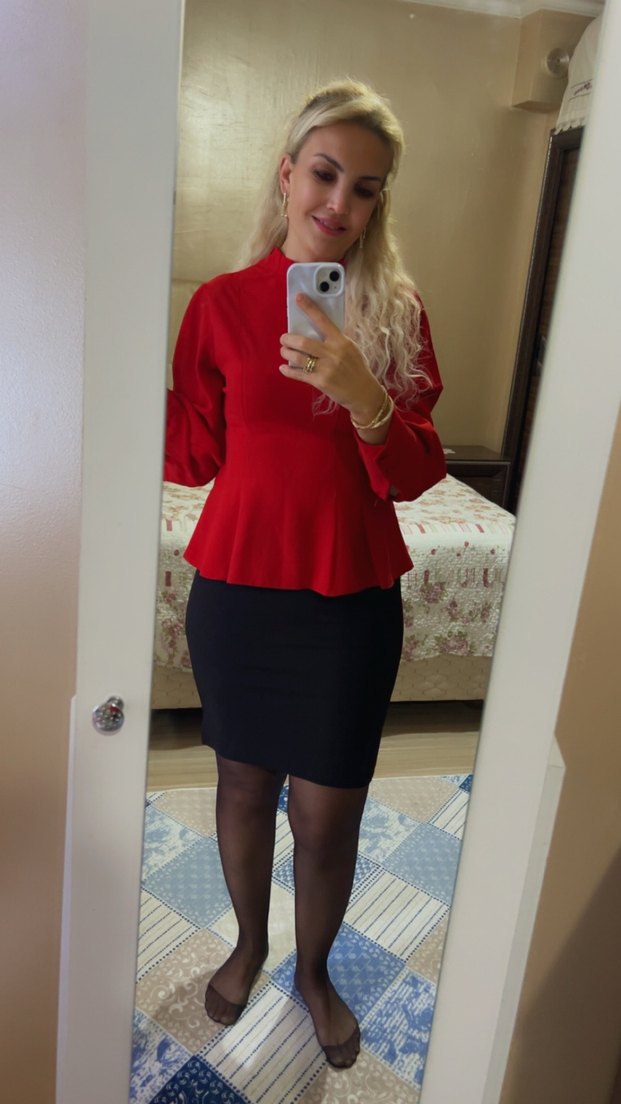 Koyu kırmızı renkte, uzun kollu ve yüksek yakalı, vücuda oturan midi uzunlukta kadın ofis bluzu. Desensiz ve rahat şıklık sunar. Boyu 56 cm iki kol arası 40 cm Rengiyle göz kamaştıran, adL kalitesinde çok zarif bir parça! ✨ • Marka: adL (Adil Işık). • Beden: M (38 beden ile uyumludur). • Renk: Canlı ve iddialı bir kırmızı. • Tasarım Detayları: • Yaka: Modern ve sofistike bir duruş sergileyen hakim yaka kesimlidir. • Kollar: Manşetli ve hafif balon kol formundadır, bileklerde çok şık durur. • Kesim: Vücut hatlarını zarifçe takip eden, dökümlü ve kaliteli bir kumaş yapısına sahiptir. • Durumu: Genel durumu çok temizdir; renginde solma veya kumaşında deformasyon yoktur. • Not: Sadece sol kol manşetinde bir adet düğme eksiktir; uygun bir düğme ile kolayca tamamlanabilir veya her iki koldaki düğmeler değiştirilerek kişiselleştirilebilir. Bu küçük kusur nedeniyle fiyat uygun tutulmuştur. Hızlı kargoya verilir, alıcısına şimdiden hayırlı olsun! #adl #adilişık #kırmızıbluz #mbeden #38beden #