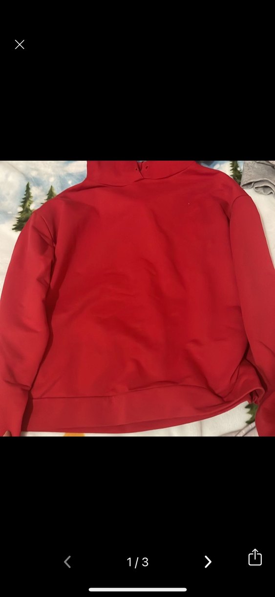 Yüksek yakalı, uzun kollu ve vücuda oturan kırmızı kadın sweatshirtü, yumuşak ve sıcak kumaştan yapılmıştır. ve dış mekan kullanımı için uygundur.