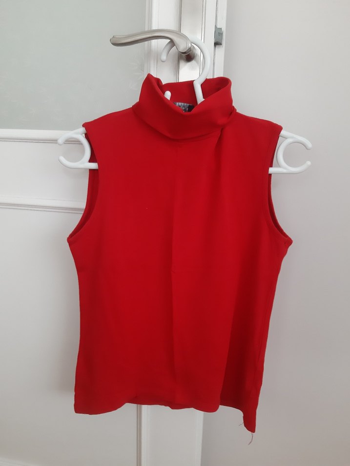Kırmızı Yüksek Yakalı Kolsuz Kadın tişört