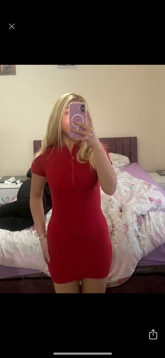 Kırmızı, Yüksek Yakalı Mini Elbise