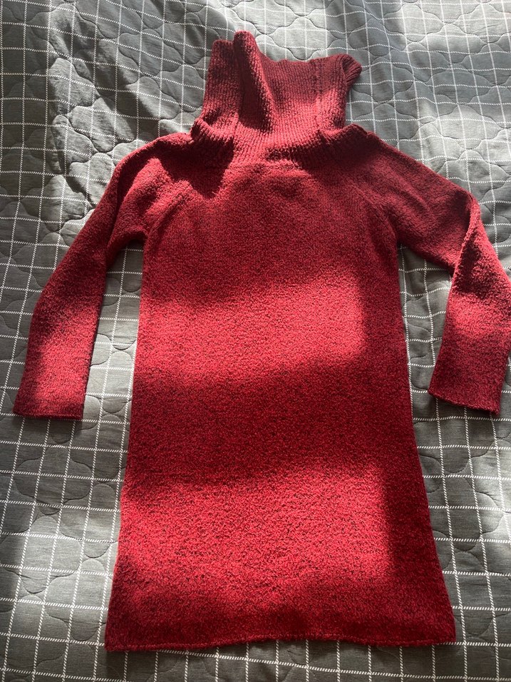 Bu kırmızı yün boğazlı kazak, uzun kollu ve vücuda oturan kesimiyle rahat ve şık bir görünüm sunar. Yeni gibi sayılı giyildi