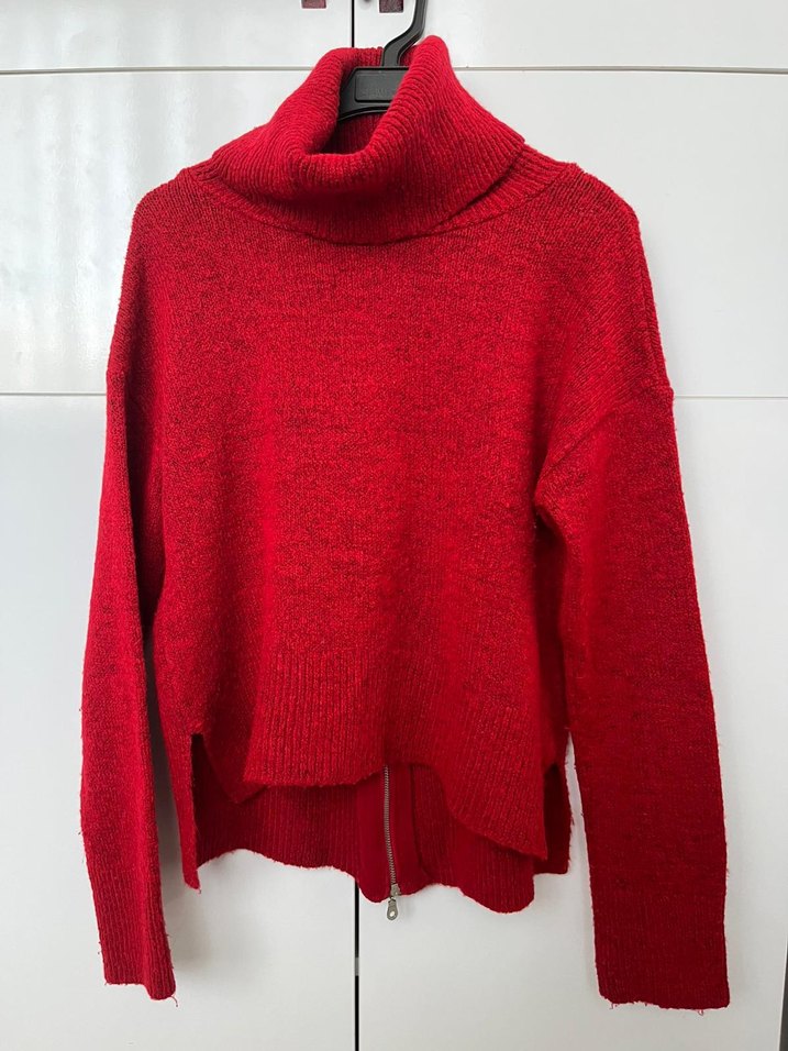 Kırmızı Yün Kadın Yüksek Yakalı Kazak