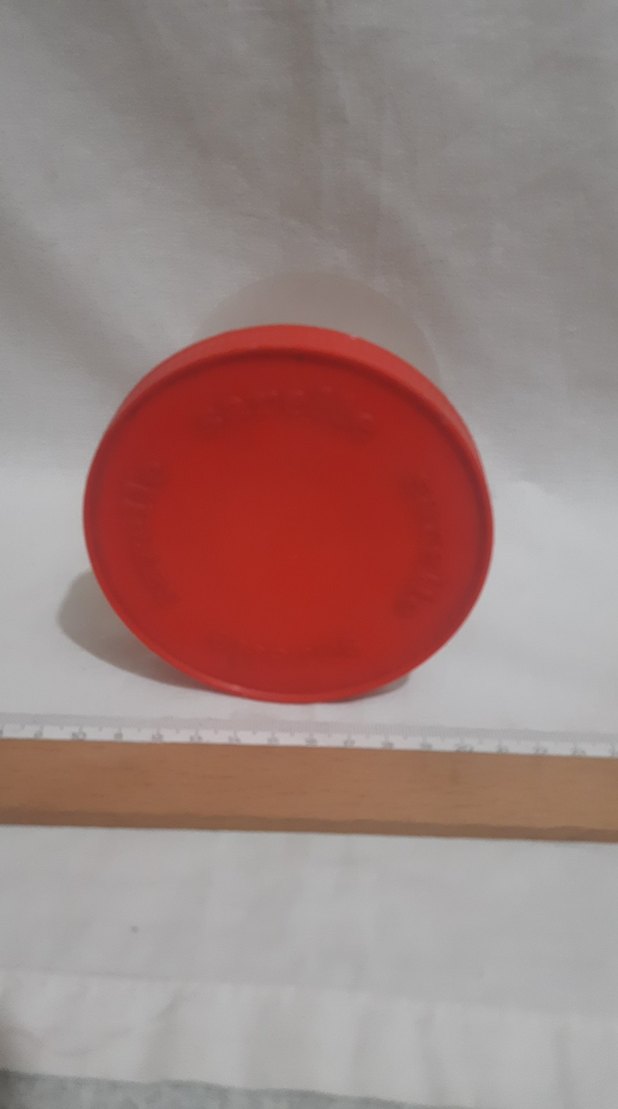 sarella saklamak için kullanılan kırmızı yuvarlak kutu.