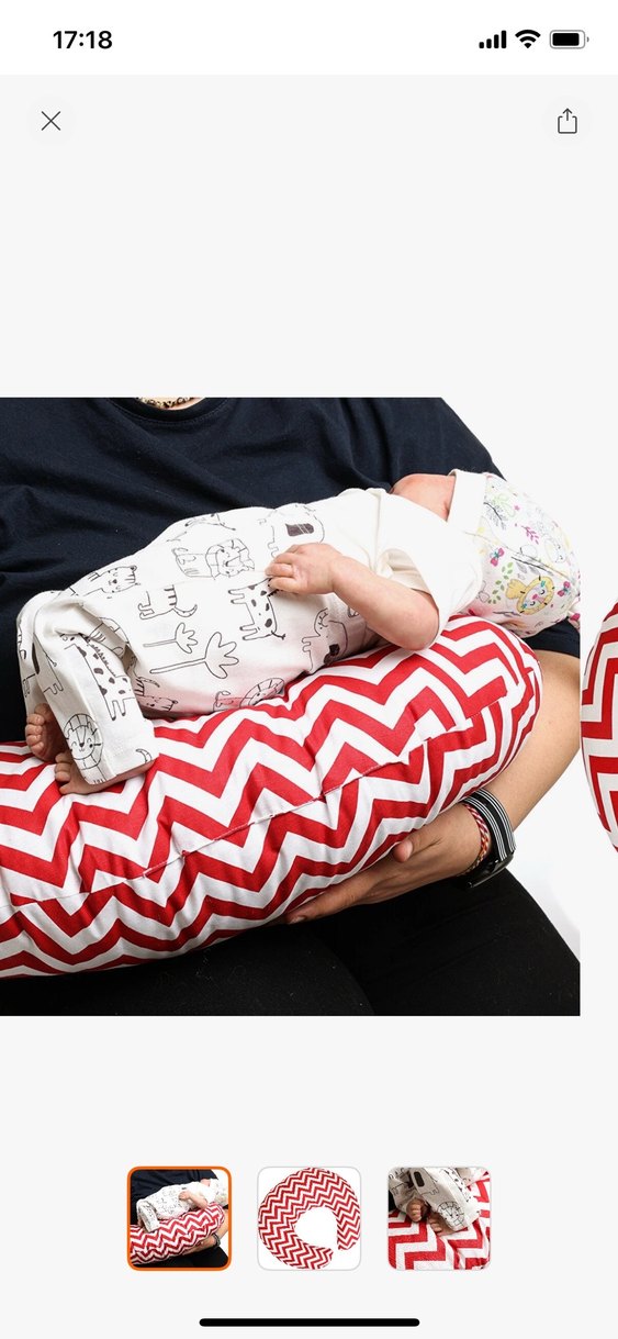 Kırmızı zebra desenli anne emzirme yastığı, hamilelik ve emzirme sırasında rahat destek sağlar.
