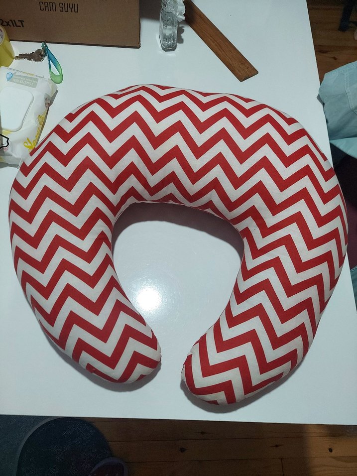 Renkli kırmızı zebra desenli, yumuşak destek sağlayan hamile ve emzirme yastığı.