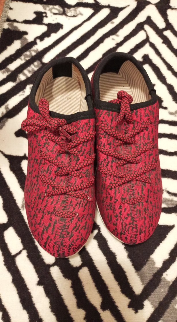 Kırmızı zebra desenli, yüksek topuklu ve bağcıklı spor ayakkabı, kauçuk malzemeden, trend sokak stili için uygundur.