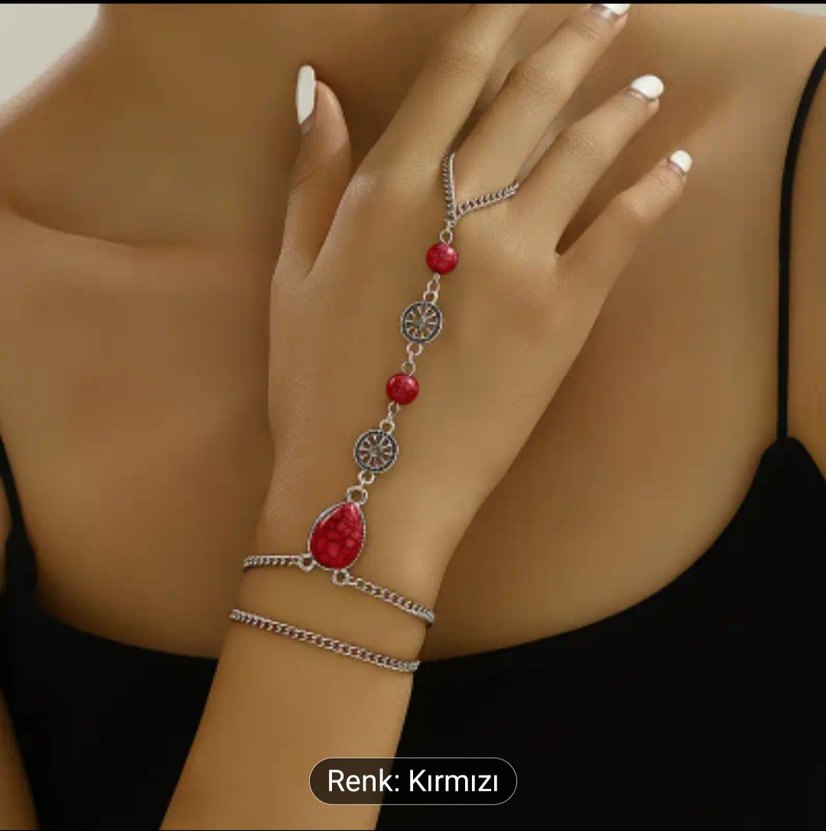 Kırmızı Zincir Detaylı Bohem Kadın El Zinciri