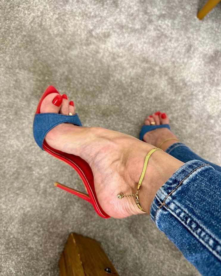 Kırmızı Zincir Detaylı Denim Stiletto