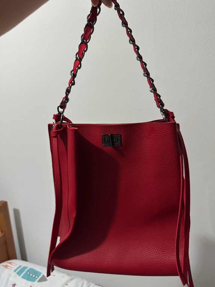 Kırmızı Zincir Detaylı Deri Kadın Çanta