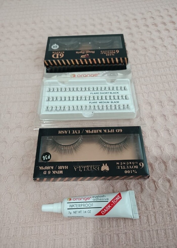 Takma kirpik ve yapıştırıcıyla birlikte. Hepsi ortak fiyat