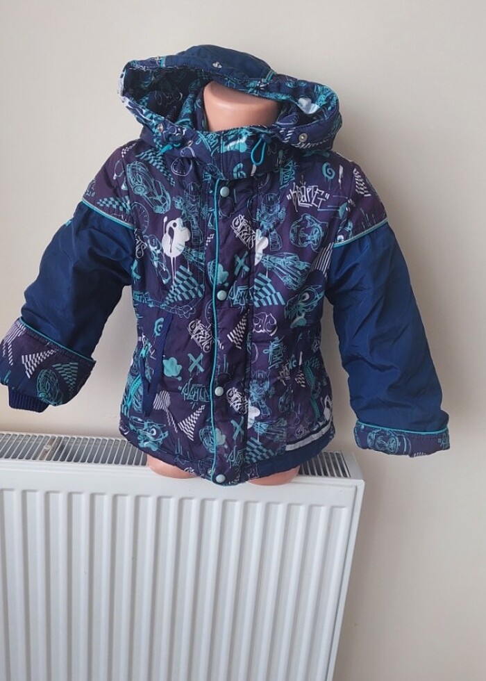 Yurt dışında geldi. Kayak yada mevsimlik montu. Soğuk hava için. Biraz renk solması vardır .sıcacık tutar ama kalın değil. Ölçü: iki kol arası-34 cm. Boy 50 cm. Kapüşonlu 2-3 yaş için.