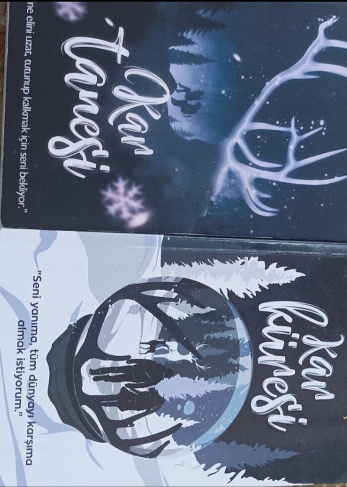 Karlı orman ve geyik temalı kış romanları, şiirsel alıntılar içeriyor.