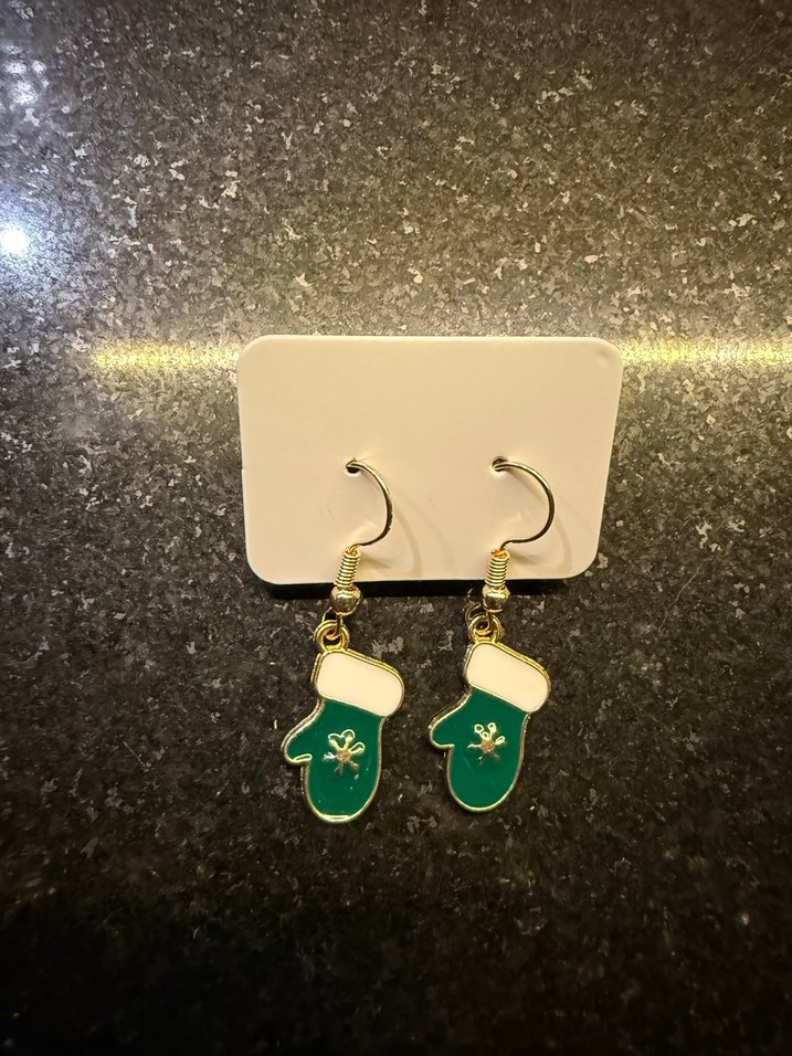 Kış Temalı Yeşil Eldiven Mini Küpe