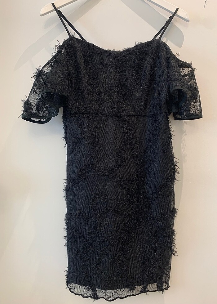 Temiz kullanılmıştır, diz üstü abiyedir. Tüyler simlidir. Kol iki türlü kullanılabilir, ister askılı ve düşük kol isterseniz kollarda omuza çıkıp yarım kol yapabilirsiniz. Ya da askıyı hiç takmadan tamamen açık düşük omuz modeli. M bedendir ama geniş değildir, m ve s diyebilirim.