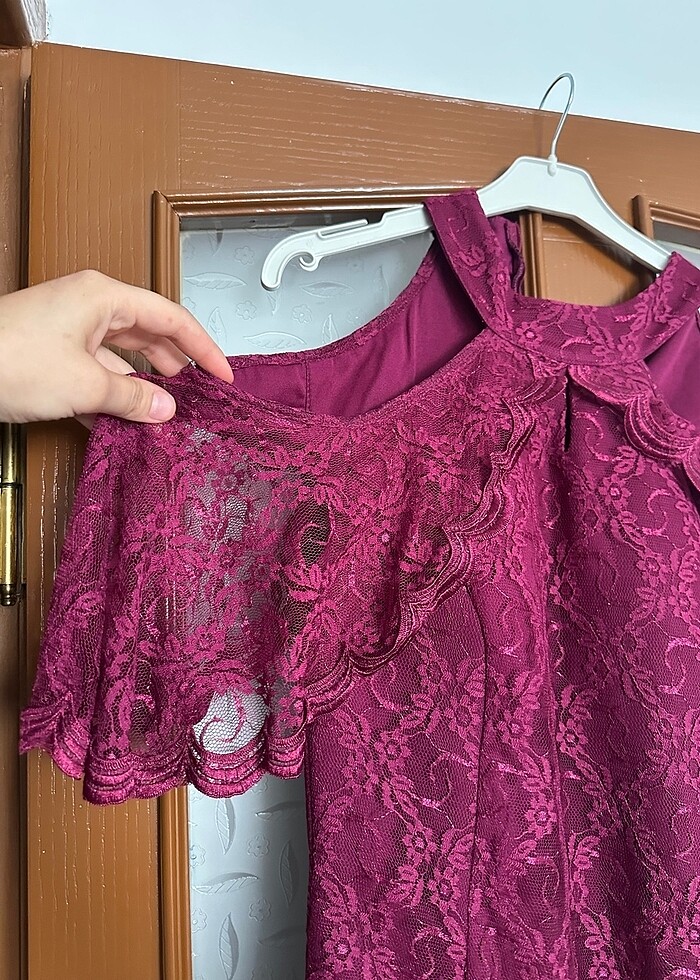 Likrasız. Bel:39 Boy:104. Bordo ve pembe arasında bir renk.
