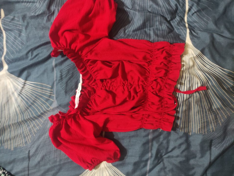 Kırmızı renkli, kısa kesim ve oturan modelde, fırfır detaylı, tek renk kadın bluz. Kayık yaka ve ince askılı kollarıyla rahat kargo bedava değil bedavaya cıkartamadım yanlış yani