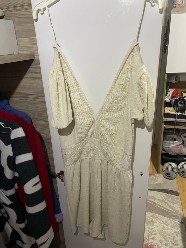 Kısa balon kollu v yaka tulum