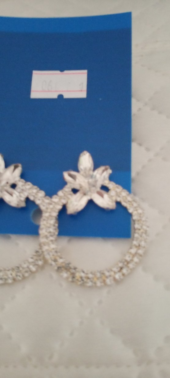 Kısa uzunlukta, beyaz renkli, işlemeli çiçek desenleri ve payet detaylarıyla süslenmiş küpeler, klasik zarafetle düğünlerde parlamak için ideal.