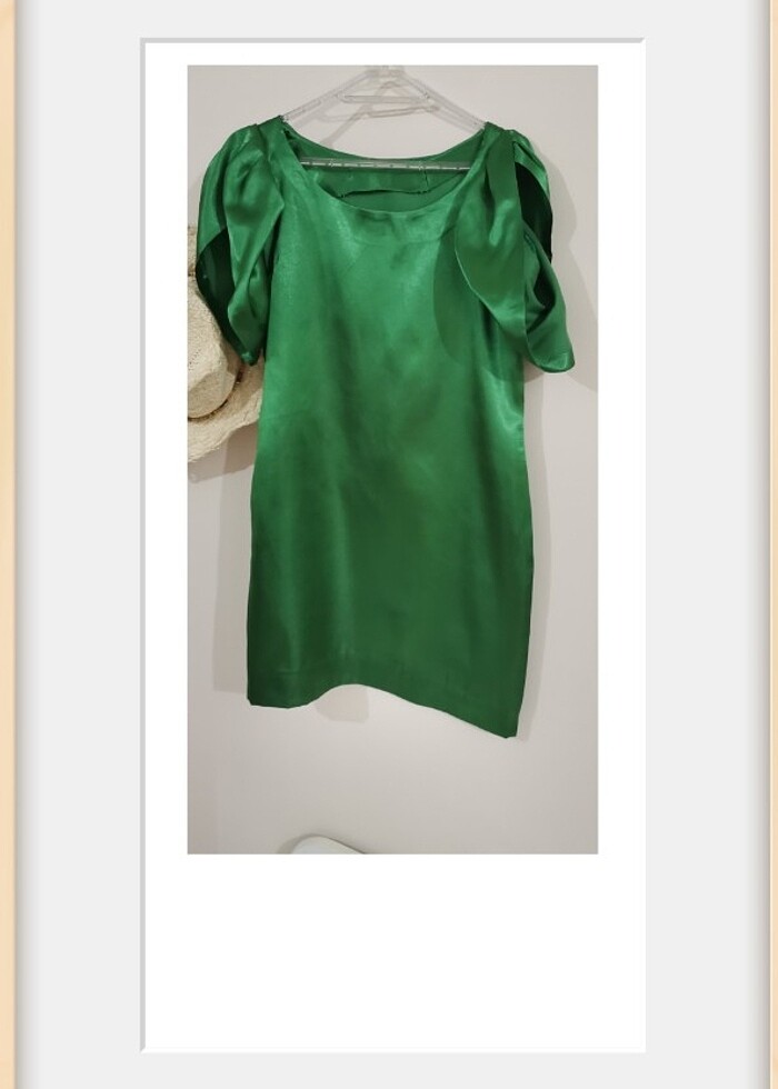 Saten kısa davet elbisesi 2 kez giyildi Boy 81cmdir. İçe 5 cm kıvırma payı vardır. Özel dikimdir. Beden olmadıgı için satıyorum