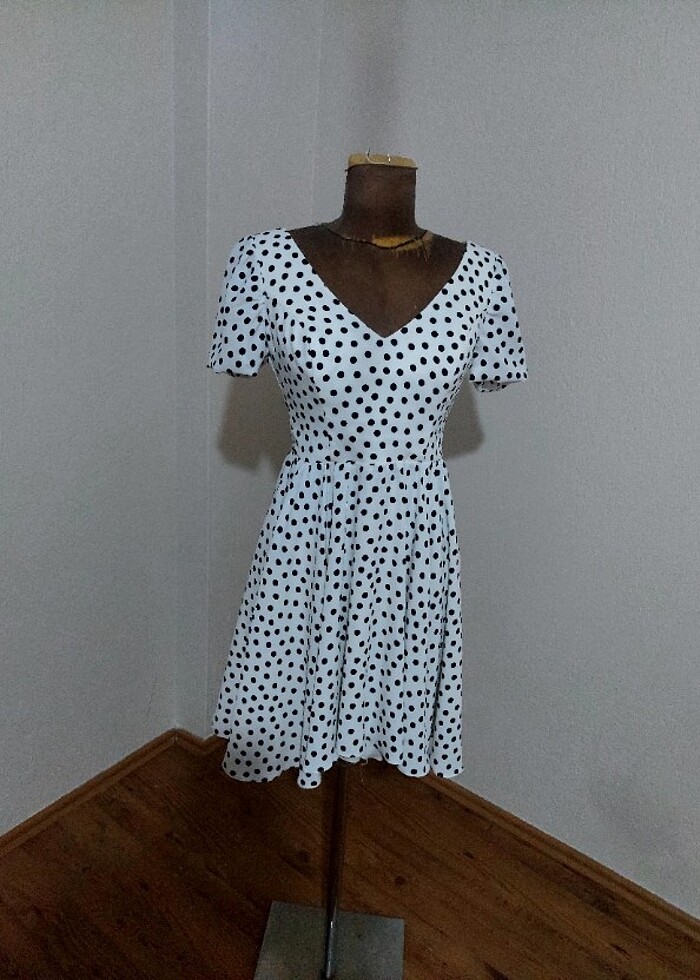38-40 beden uyumlu.Özel kesim kısa elbise hafif mini karpuz kol. Ön arka V yaka.