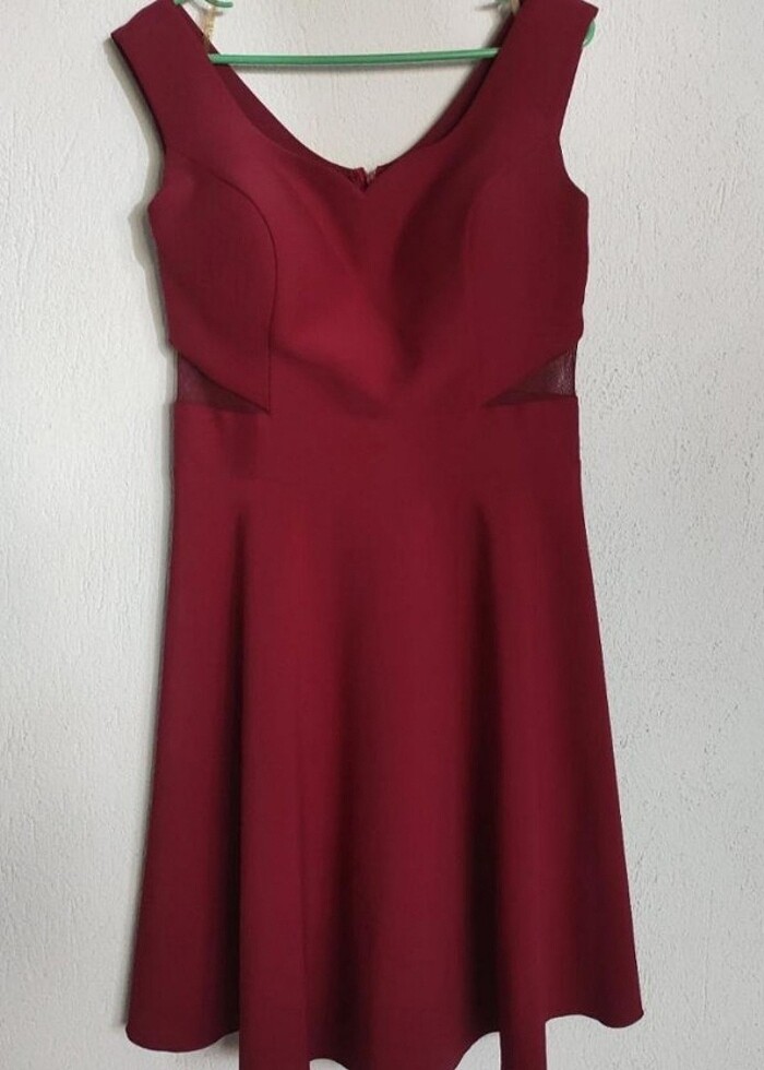 Bordo - vişne rengi karışımı çok güzel bir rengi var belinde tül detaylı. 17-18 yas giyebilir. Hiç bir kusuru yok