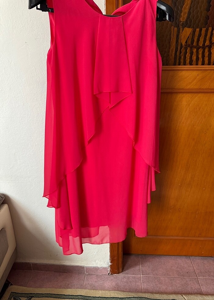 Tül detaylı temiz elbise L 40 Fuşya