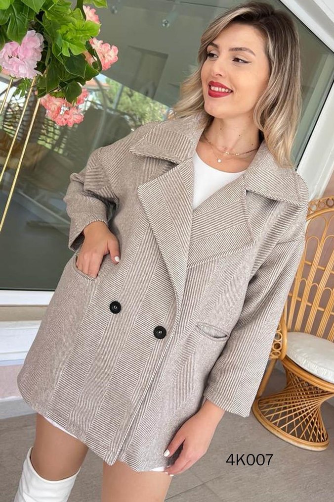 Gri renkli, keten kumaştan üretilmiş, düğmeli ve mini uzunlukta kadın ceket. Notched lapel yaka ve uzun kollu, rahat kesimiyle günlük sokak stiline uygundur. Sıfırdır etiketi üstündedir L-XL bedendir