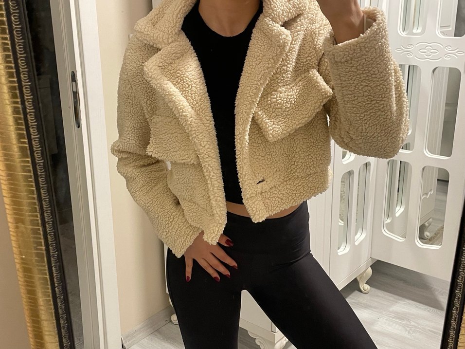 Kısa Kesim Bej Peluş Kadın Ceket