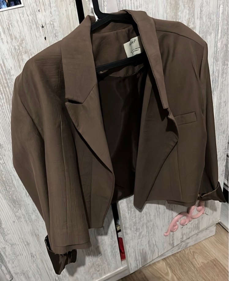 Kısa kesim kahverengi keten blazer, düğmeli ve çıtmalı yaka detaylıdır. Uzun kollu ve regular fit, ofis için uygun şık bir parçadır. Hiç giyilmedi. Aldım ama hoşuma gitmedi ve öylece duruyor pantolonu da mevcuttur. Aynı renk havuç . Dilerseniz mesaj ile iletişime geçebilirsiniz.